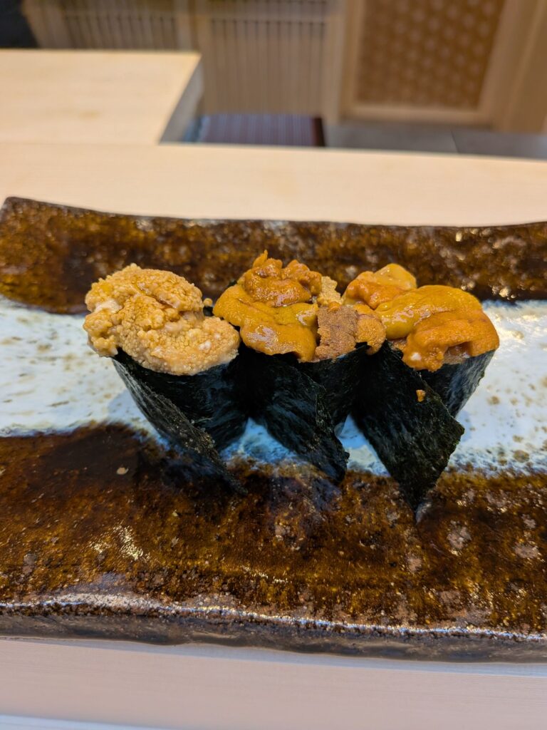 お寿司は全て味付けされているので、そのままいただけます。赤酢のシャリがさっぱりとしていて、ネタはどれも大変美味しかったです。ウニやいくらも、ボリュームがあり食べ応えがありました。